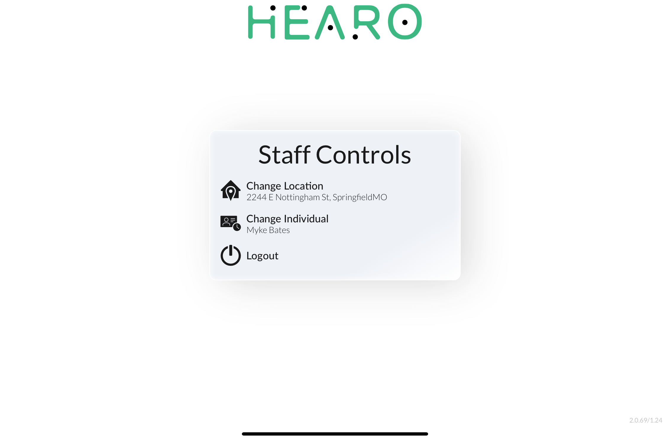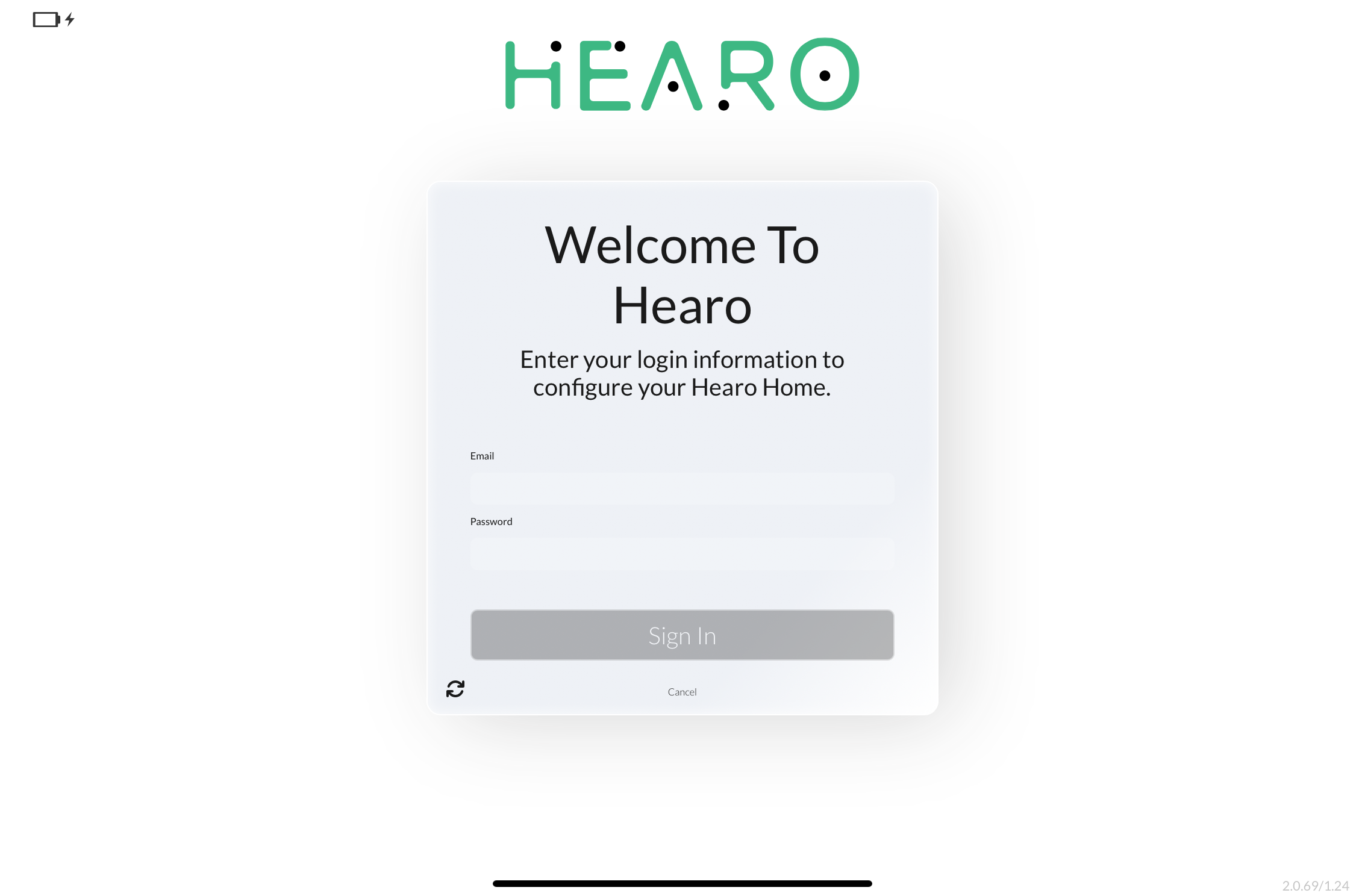 To start, look for the small battery icon in the top left corner. Press and hold until a login window appears, then sign in with your Hearo account to complete the assignment.