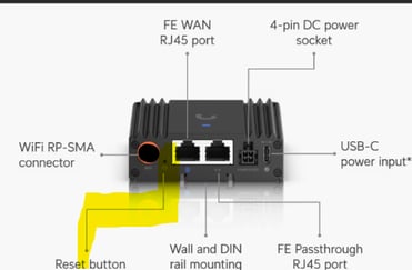 2. Hold down the reset button highlighted below for 10 seconds. Use a paperclip, SIM card remover pin