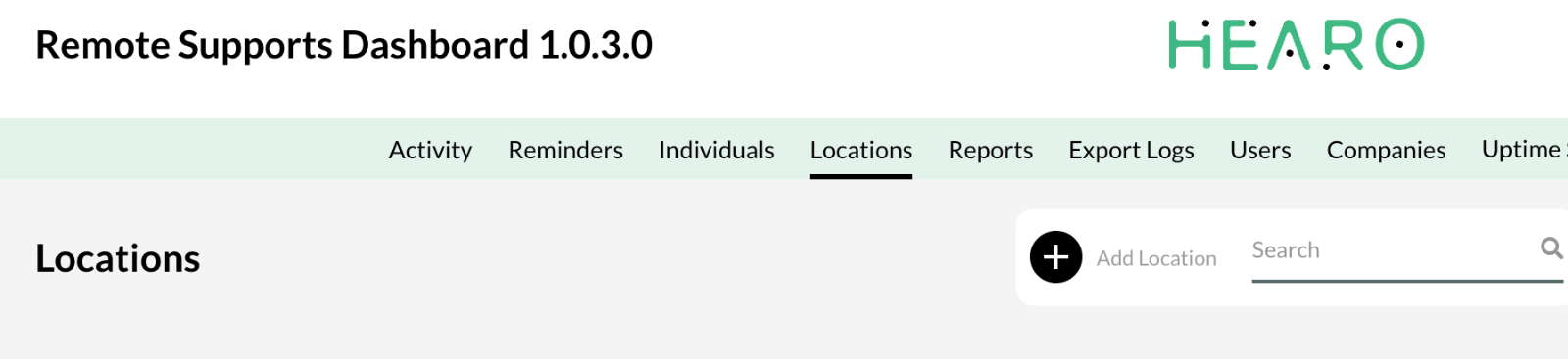 To add a new Location, simply navigate to the Locations menu item in the main navigation at the top of the Hearo Remote Supports Dashboard.