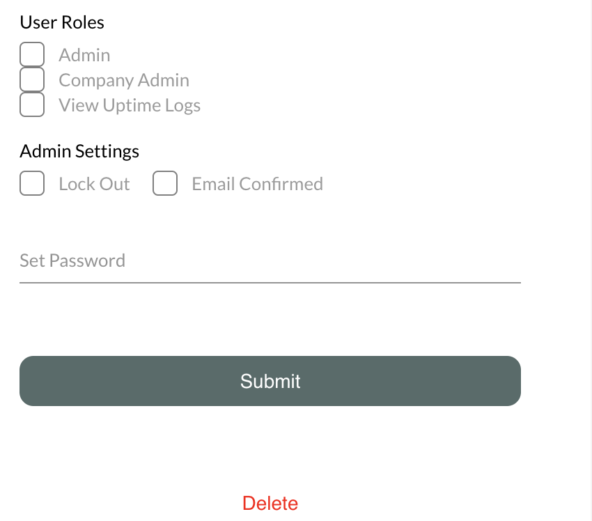 You are also able to revoke any User Access, to any Location, by deleting the User's record in our database. Simply navigate to the Users list, from the toolbar at the top, click on the User in question, and there is an option to Delete at the bottom of the modal/window.