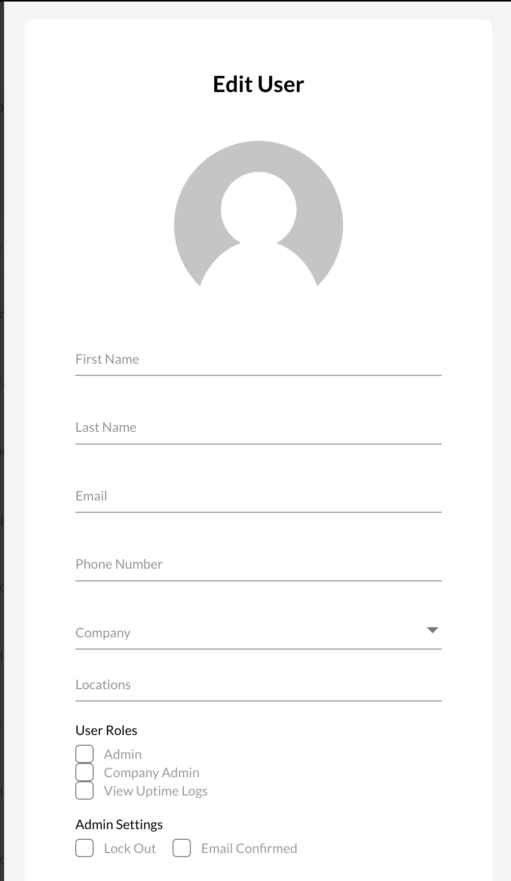 It will then bring up a little modal/window that prompts for some information; namely, First Name, Last Name, Email (this is vitally important, as it is the means by which we grant continued access), Phone Number (not necessary), Company to which the User will be assigned (generally just the one), and to which Locations the User will have access.
